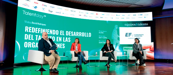 En el TalentDay Barcelona tratamos el desarrollo del talento en la mesa “Redefiniendo el desarrollo del talento en las organizaciones”. En ella, Mireia Segura, directora de People and Development de Allianz, explicó que: “Recuerdo que en precovid estábamos obsesionados con generar oferta formativa. Estábamos muy enfocados en generar la cultura de aprendizaje, pero después nos dimos cuenta de que con más oferta formativa no cambiaba la percepción de los empleados en cuanto a su desarrollo. Nos dijeron que la valoraban, pero que no tenían tiempo para formarse. Así, empezamos a trabajar en arquitectura de puestos, en ver qué skills eran importantes, y qué necesitaremos para el futuro”. Y Sònia López Alonso, head of Talent Management & HR Policies de SEAT y Cupra, comentó que: “El cliente está cambiando y esto impacta en todo. La transformación es un pilar muy importante en nuestra cultura y valoramos mucho el legado que dejaremos en la sociedad y en la propia empresa. Ya teníamos planes de desarrollo y sucesión, pero el objetivo era crecer en talento, y ahí viene la pregunta: ¿Qué es talento? Así que empezamos a intentar entender qué era y qué no era talento”. Finalmente, Mercedes Sillone, Global Talent director de Grupo Bimbo, reconoció que: “Todos en el área de Personas buscamos cómo llegar al siguiente nivel en cuanto al desarrollo del talento. Uno de los proyectos que impulsamos es el de crear un lenguaje y competencias de liderazgo comunes en toda la compañía para que las evaluaciones de desempeño sean iguales en todos los países. Y también damos mucha importancia a los líderes”. La moderación de David Rodríguez, Regional director de HULT EF Corporate Learning.