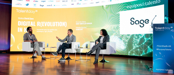 La digitalización en RRHH fue aborada en la mesa patrocinada por Sage. Sobre este tema debatieron responsables de personas de Grup Ametller Origen y Gameloft. Fernando Oteiza, director general de Personas y Operaciones de Grup Ametller Origen, brometó al comentar que: “Nuestra empresa es un poco rara porque nosotros amamos lo tradicional” y añadió que: “Nuestro primer reto fue: cómo enfrentarnos a un proceso de digitalización en una empresa que tiene en su ADN volver a lo tradicional. Y el mayor impacto ha sido realizar un plan de digitalización con una clave: la digitalización tiene que garantizar la cercanía, tiene que permitir unir a las personas. Y, por otro lado, la digitalización tiene que traernos eficiencia: eliminar cosas que no aportan valor. Creo que el departamento de Personas tiene que dejar de ser personas que gestionan procesos que gestionan personas, a personas que gestionan personas”. Y Yolanda Sánchez España, HR director de Gameloft, destacó que: “Una de las cosas en las que más ha impactado la digitalización es en la posibilidad que nos ha brindado de automatizar procesos. Antes éramos un departamento en el que hacíamos nominas, procesos más administrativos, y el hecho de automatizar ha permitido que seamos más eficaces, que aportemos valor, que mejoremos muchísimo la experiencia del empleado y de la contratación. Creo que la automatización y la optimización han sido los cambios más grandes, pero la toma de decisiones basándonos en datos también ha cambiado, así como la experiencia de empleado”. Y la moderación de David Egea, Senior Product manager de Sage.