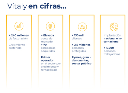 Con más de 25 años de experiencia en el sector, nos definimos como una empresa altamente especializada en el desarrollo de servicios y productos que mejoran el bienestar de las personas. Contamos con más de 4.000 profesionales altamente cualificados y una amplia red de centros para proteger a sus más de 130.000 empresas clientes y 2.500.000 de personas protegidas.
