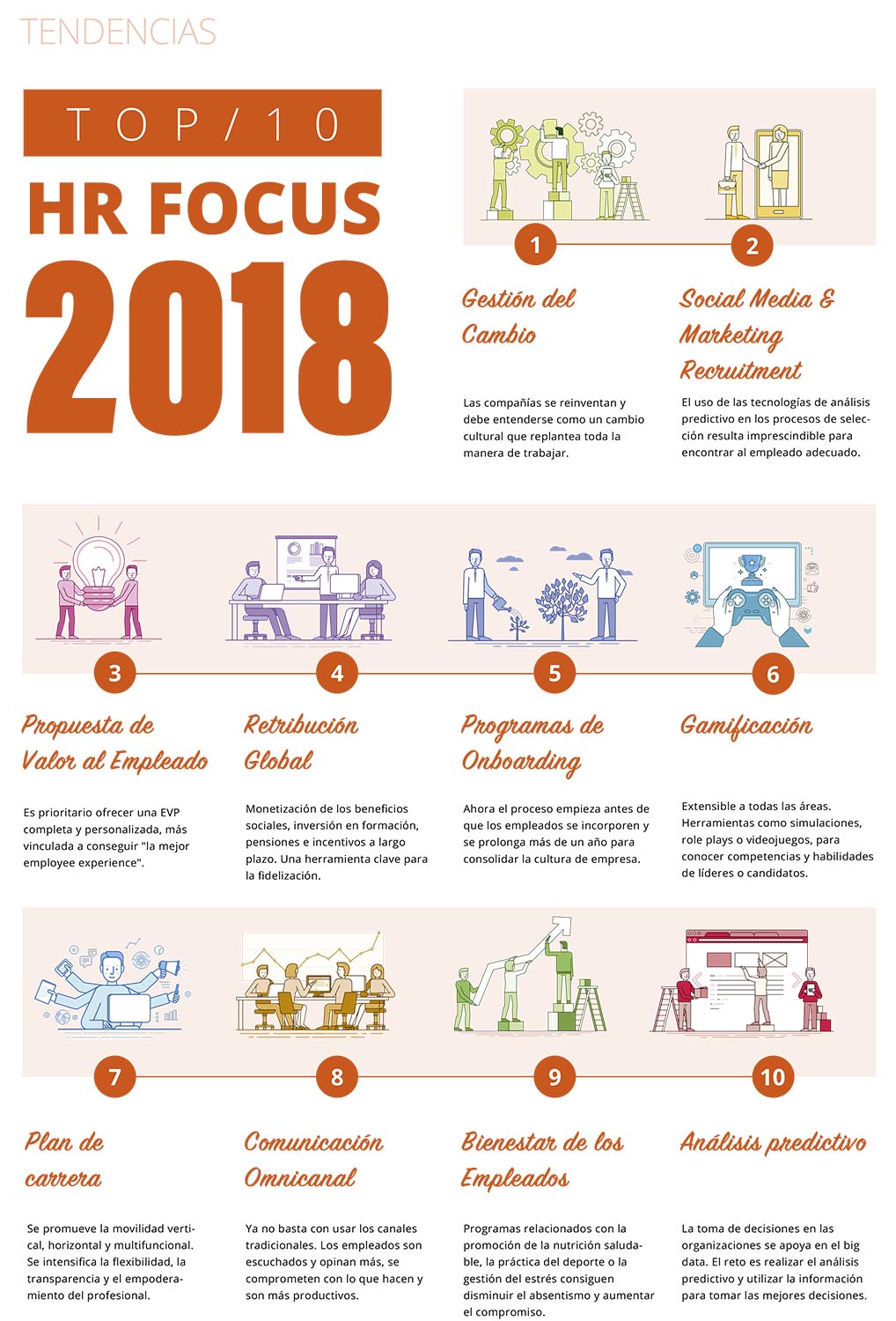 19/03/2018 · Conforme la tecnología avanza, el reto digital que tienen ante sí las empresas aumenta y, con él, la necesidad de incorporar nuevo talento con conocimientos muy precisos y ligados a algunas de las 10 tendencias identificadas por Talent Street en una infografía que, por otro lado, deberán seguir los departamentos de recursos humanos de las compañías para, no sólo atraer a los nuevos profesionales, sino también retener y fidelizar a esa fuerza de trabajo necesaria para mantener la competitividad de la empresa.