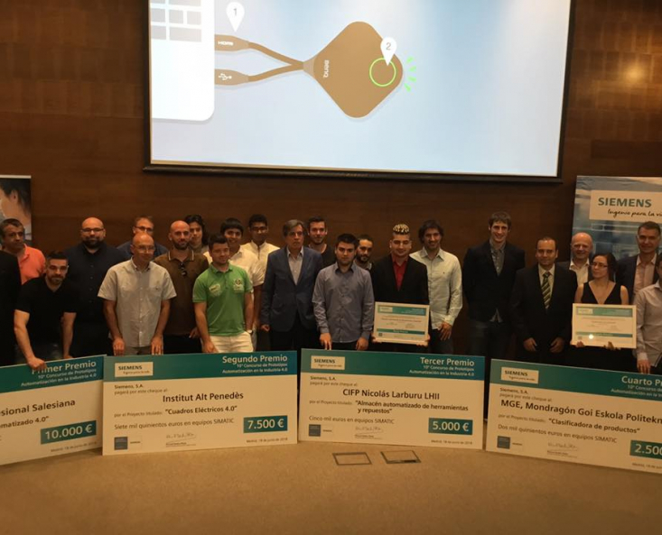 Siemens ha concedido los premios a los ganadores del 10º Concurso de Prototipos "Automatización en la Industria 4.0". La temática de esta edición se centra en el uso de las últimas tecnologías para abordar la transformación digital en la industria, incluyendo últimas tendencias como IoT, La Nube para la gestión del Big Data, Robótica Colaborativa e Impresión 3D.