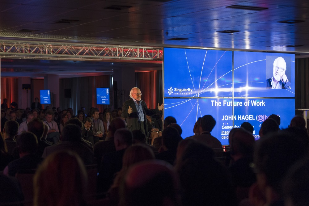 La innovación aplicada a los puestos de trabajo también tuvo su protagonismo, de la mano John Hagel, copresidente del Center for the Edge en Deloitte, que sostuvo que “los grandes cambios crean grandes oportunidades, pero también grandes presiones, ya que la competencia es feroz”. Un factor que se soluciona aplicando métodos de aprendizaje escalable, es decir, que añadan valor en un mundo cambiante y permitan adquirir conocimientos en el puesto de trabajo y no en la sala de formación según Hagel. “Hay que recordar que, independientemente del número de gente inteligente en nuestra empresa, habrá muchos más fuera de nuestra organización”.