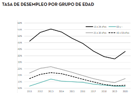 Sin embargo y pese a la crisis derivada de la pandemia, la tasa de paro para las personas de 60 y más años de edad se redujo en 2020, quedando en un 11,4%, el dato más bajo desde 2010. En cambio, para todos los menores de esa edad, la proporción de parados se incrementó. Por ello, cuanto menor edad, mayor el crecimiento de la tasa de desempleo.