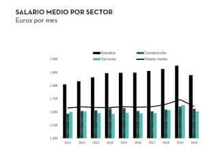 En 2020, el salario real cayó un 2,7%, pues el descenso de un 3% del salario nominal fue en parte compensado por una caída de un 0,3% del IPC. Es la mayor pérdida de poder adquisitivo del salario medio en al menos 45 años. Esa caída hizo que el poder de compra del salario medio retrocediera a un nivel similar al que tuvo en 2003.