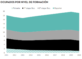 Las cifras ponen de manifiesto que en esta crisis quienes cuentan con estudios superiores logran aumentar el empleo. Pero, pese a ser el único grupo que aumentó su empleo en 2020, el número de parados con formación superior es el que más se incrementó. En todo caso, el grupo más numeroso de parados continúa siendo el de aquellos que no superaron la primera etapa de la educación secundaria.