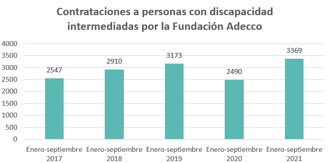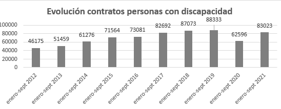 En concreto, entre enero y septiembre de 2021 las personas con discapacidad han firmado 83.023 contratos.
