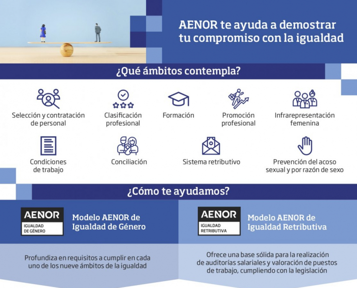 Con este sello, AENOR certifica que, más allá del cumplimiento legal, la empresa acredita un compromiso real por la igualdad de género a través de evidencias trazables. Y es que, el sistema de gestión es auditable a través de indicadores de gestión en cada momento del ciclo de vida de la persona trabajadora (contratación, formación, desarrollo, compensación, relaciones laborales, evaluación, etc.).