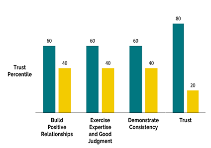 1.- Confianza: nuestros socios Zenger Folkman, tras estudiar a más de 87.000 managers, determinaron tres elementos clave para generar confianza: construir relaciones positivas, conocimiento técnico y buen juicio en la toma de decisiones y la consistencia. Cuando tenemos los tres en percentil 40 nuestra confianza se desploma a percentil 20 pero si desarrollamos estas competencias a percentil 60 la confianza se dispara a percentil 80.