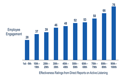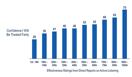 4.- Escucha: los datos de nuestros estudios demuestran que la escucha desciende con la edad y también cuando subimos en la escala jerárquica de las organizaciones, sin embargo, también evidencian una fuerte correlación entre escucha e incremento del compromiso de nuestros colaboradores, así como de su percepción de sentirse justamente tratados.
